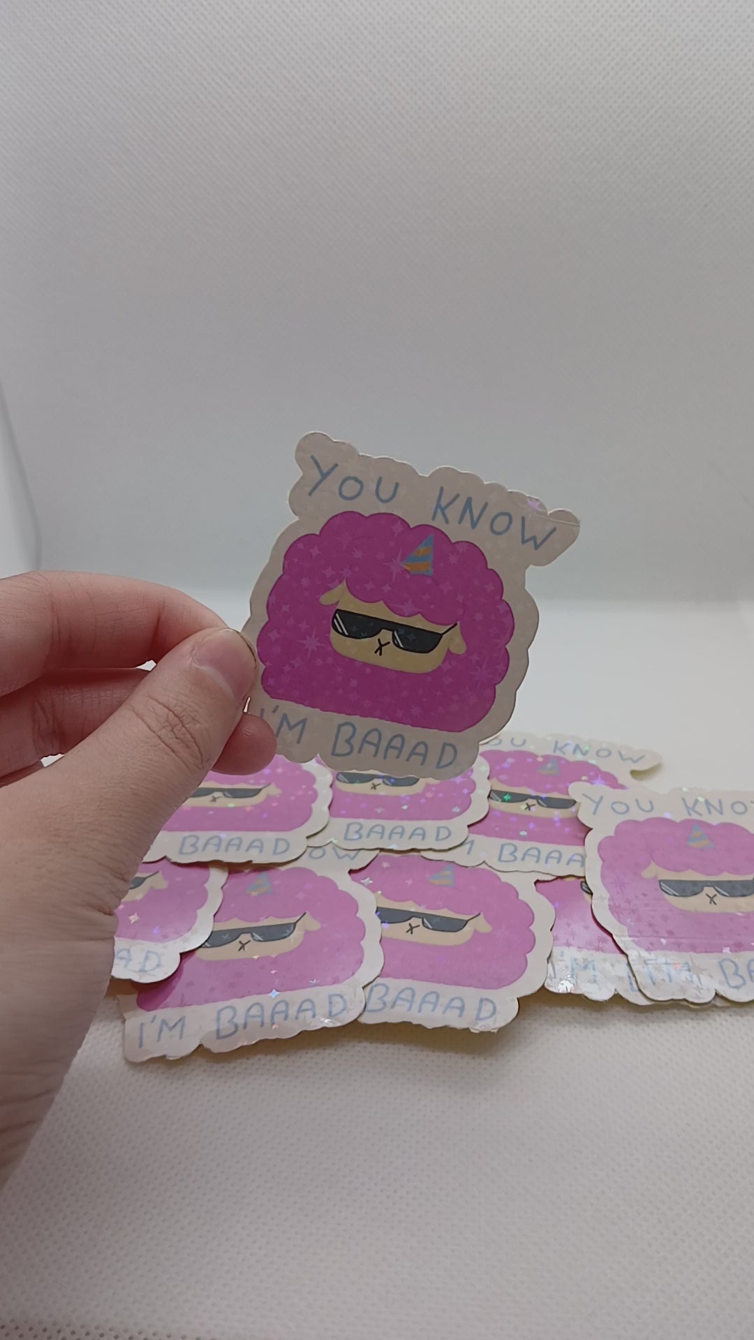 Meet Peaches, your adorable pink cotton candy sheep friend! This shimmering 2" holographic sticker brings a touch of whimsy to laptops, water bottles, and beyond. Perfect for sticker collectors and sheep enthusiasts alike, Peaches catches the light beautifully with her iridescent finish. Single-use design means she's ready to stick wherever your heart desires. Keep dry for best results and let this fluffy cutie brighten your day!
