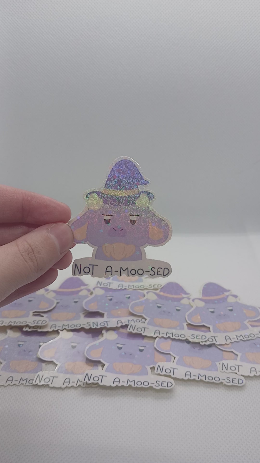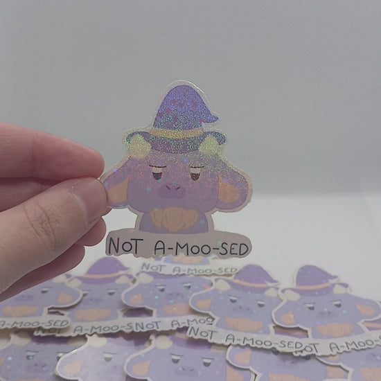 Say hello to Winnie the Witch Cow – a delightfully quirky 2" holographic sticker that's pure magic! This mystical bovine beauty gleams with iridescent shimmer, transforming as you tilt and turn her in the light. Decorate your belongings with her whimsical charm – she's perfect for personalising notebooks, phone cases, or anywhere you fancy a sprinkle of witchy fun. Keep her dry to maintain that dazzling holographic sparkle, and she'll cast her spell for ages to come!