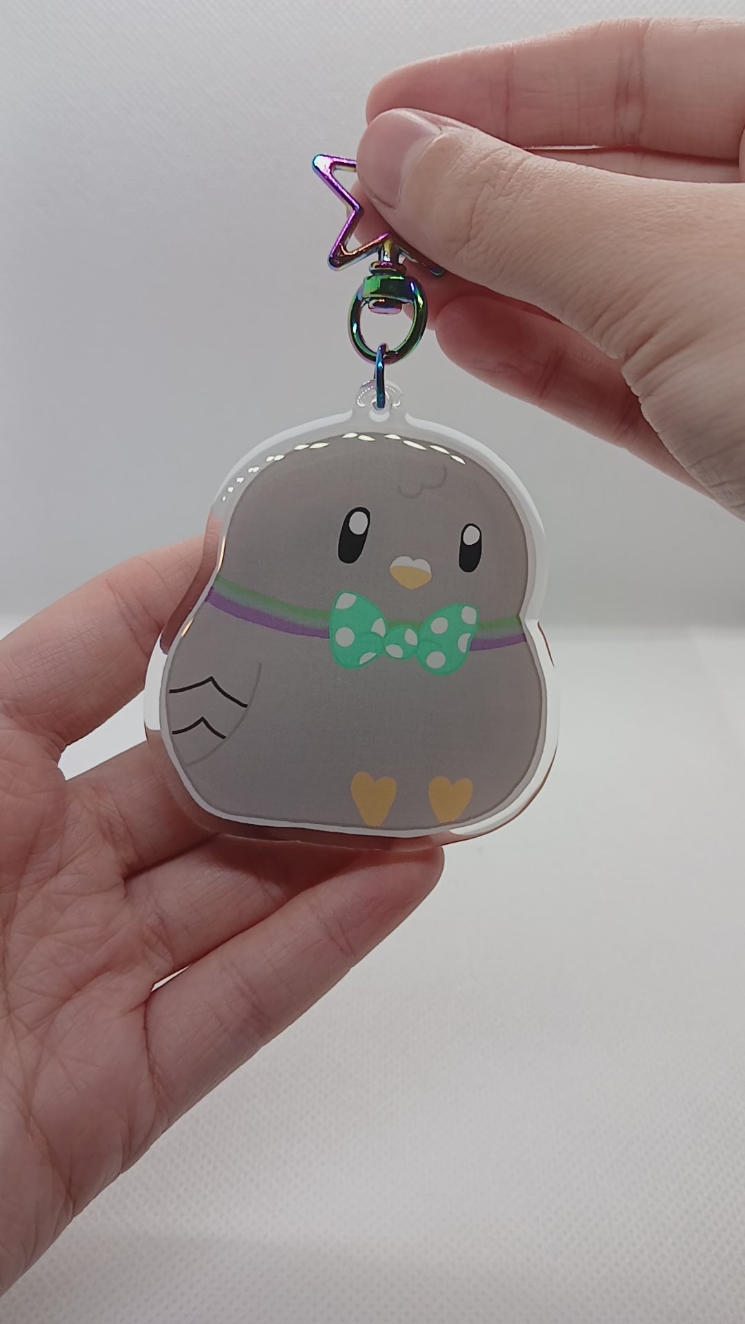 Meet Parker, the most dapper pigeon in town! This cheeky 2.5" acrylic keyring features our feathered friend sporting a rather fetching bow tie, ready to add a splash of personality to your keys or bag. Crafted from durable acrylic and sealed with epoxy resin, Parker can handle whatever you throw at him—rain, shine, or the occasional coffee spill. Perfect for pigeon lovers, quirky gift-givers, and anyone who appreciates a bit of avian charm with attitude.